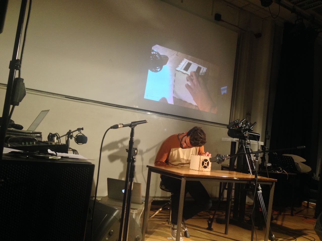 talandon (2015) is a live composition for a custom designed electroacoustic musical instrument and light. The music is developed around a basic rhythmic pattern radiated directly from the body of the instrument and from a set of physical models simulating various vibrating structures.